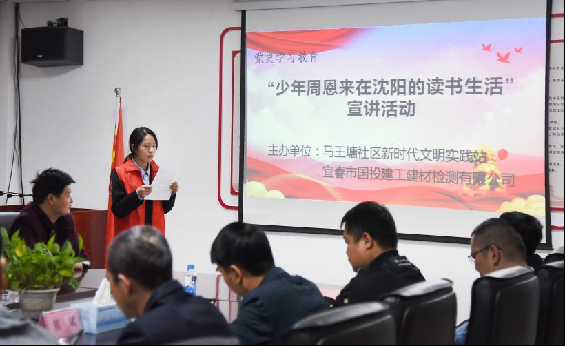 為落實(shí)新時(shí)代黨建工作總要求,構(gòu)建“以共建促黨建、以共建促合作、以共建促發(fā)展”的黨建工作新格局,推動(dòng)黨史學(xué)習(xí)教育走深、走心、走實(shí),4月25日上午,金園街道馬王塘社區(qū)黨支部與宜春市國(guó)投建工建材檢測(cè)有限公司黨支部聯(lián)合開(kāi)展黨史學(xué)習(xí)教育宣講活動(dòng)。馬王塘社區(qū)黨支部書(shū)記周萍、檢測(cè)中心黨支部書(shū)記鄒仁發(fā)及支部黨員共計(jì)36人參加活動(dòng)。
