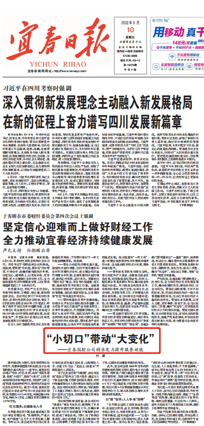 今天,《宜春日?qǐng)?bào)》在頭版顯著位置點(diǎn)贊國(guó)控人!