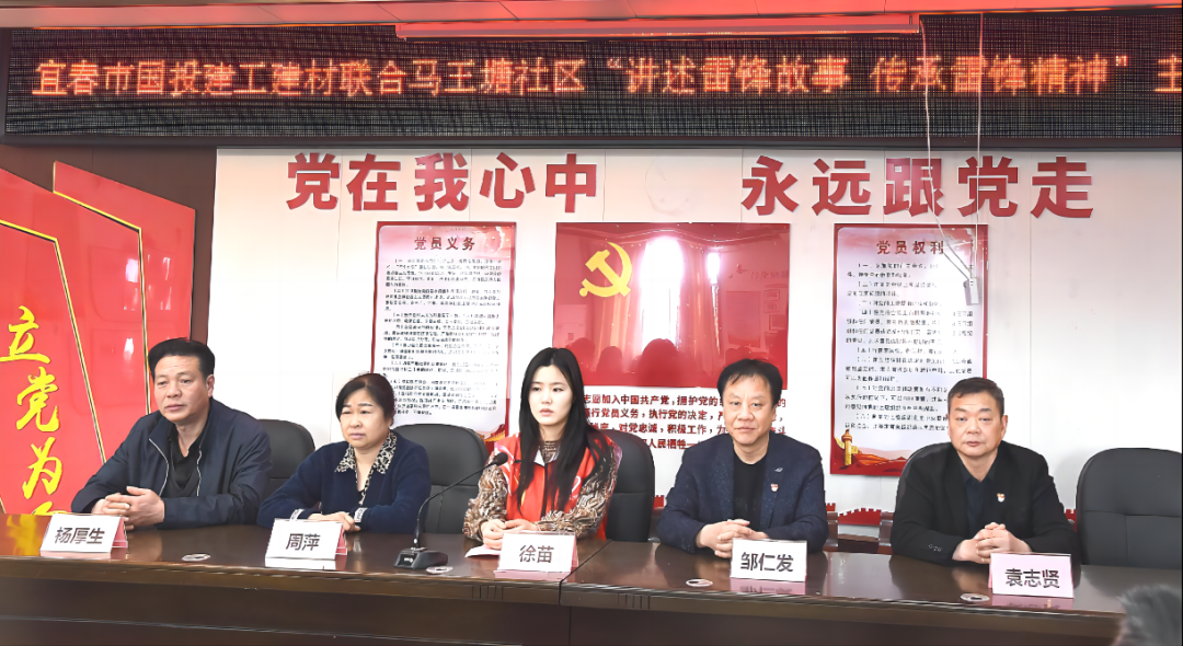 “學(xué)習(xí)雷鋒好榜樣,艱苦樸素永不忘,克己為人是模范......”每每響起熟悉的旋律,總有一股奮進(jìn)的暖流涌進(jìn)心田。今年是毛澤東同志發(fā)出“向雷鋒同志學(xué)習(xí)”號(hào)召的第60個(gè)年頭。為深入學(xué)習(xí)貫徹黨的二十大精神,傳承和踐行雷鋒同志全心全意為人民服務(wù)的精神,3月6日上午,宜春市國(guó)投建工建材檢測(cè)有限公司黨支部書(shū)記、總經(jīng)理鄒仁發(fā)帶領(lǐng)黨員、團(tuán)員青年到宜春市經(jīng)濟(jì)技術(shù)開(kāi)發(fā)區(qū)金園街道馬王塘社區(qū)居委會(huì)組織開(kāi)展“講述雷鋒故事,傳承雷鋒精神”主題宣講,旨在深入了解雷鋒精神的內(nèi)涵,傳承雷鋒精神,讓雷鋒精神綻放時(shí)代光芒。公司班子成員、部分黨員、團(tuán)員青年、社區(qū)工作人員及居民代表參加了本次宣講會(huì)。
